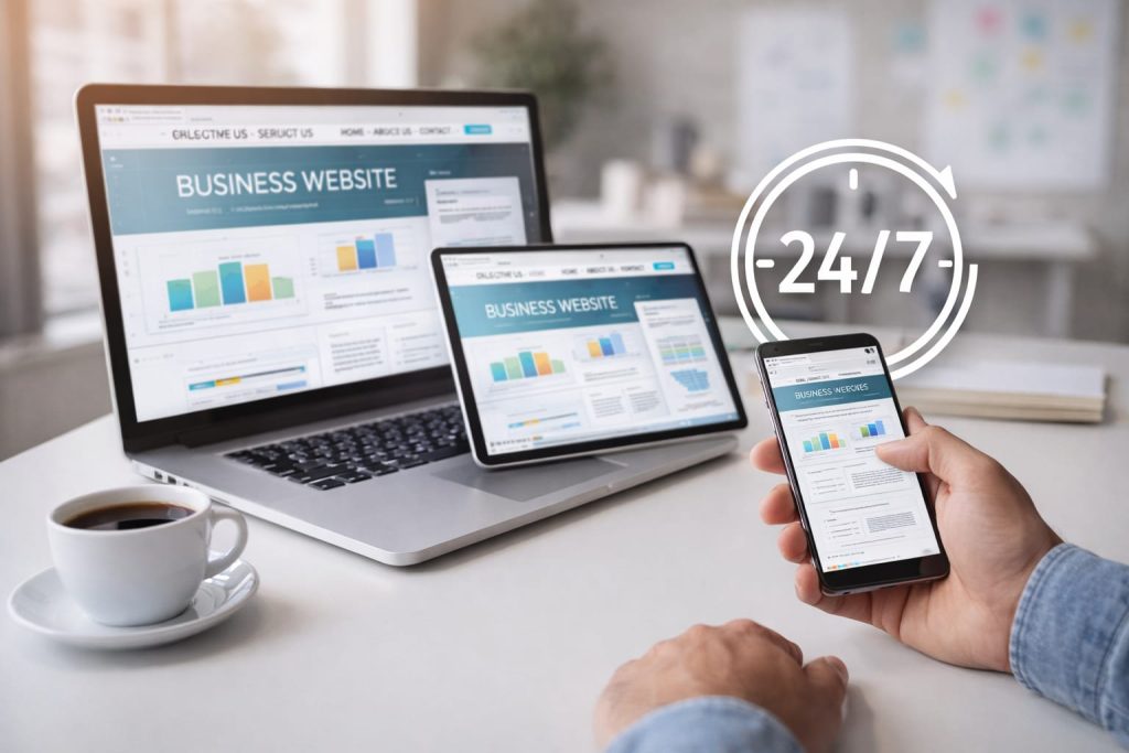 Unlike a physical office, a website works around the clock. Customers can learn about your services, contact you, or make inquiries anytime, increasing opportunities for business growth.